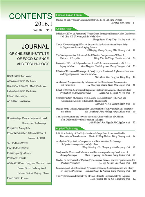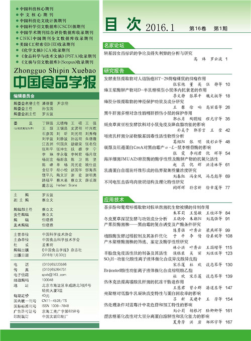 《中國食品學報》2016年第1期